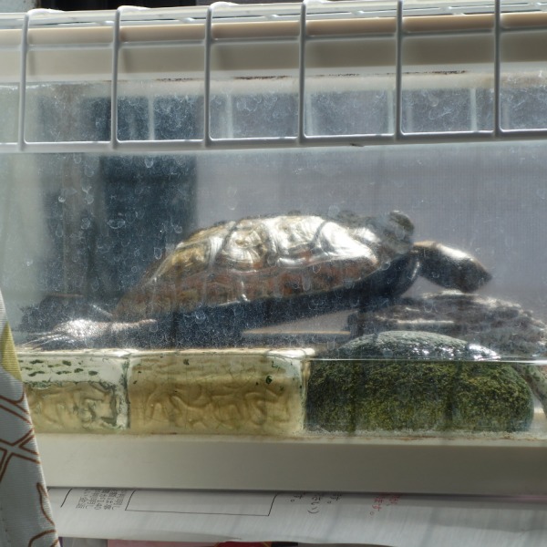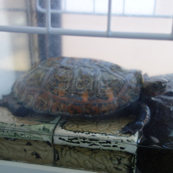 甲羅干しをしている飼育1829日のニホンイシガメ♂