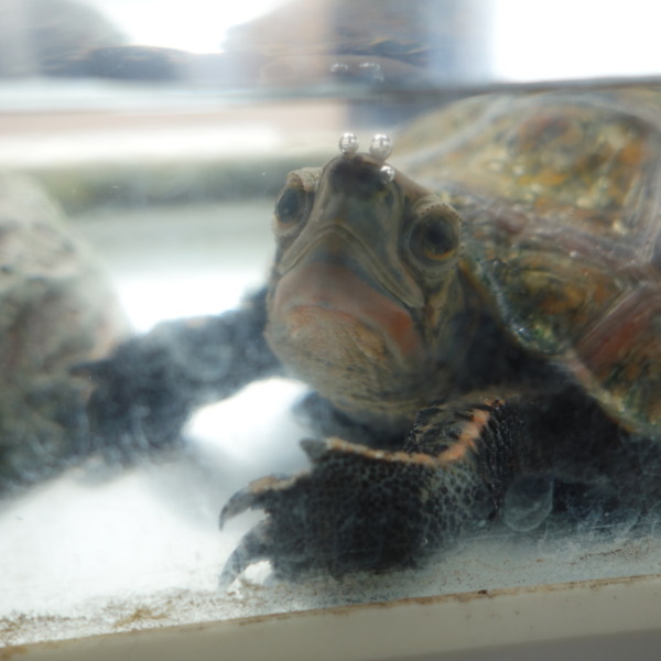鼻先に気泡が付いている飼育1807日のニホンイシガメ♂