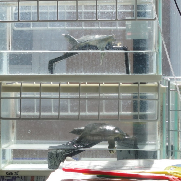 2024年9月29日に保護した2匹目と3匹目の赤ちゃんスッポンの日光浴