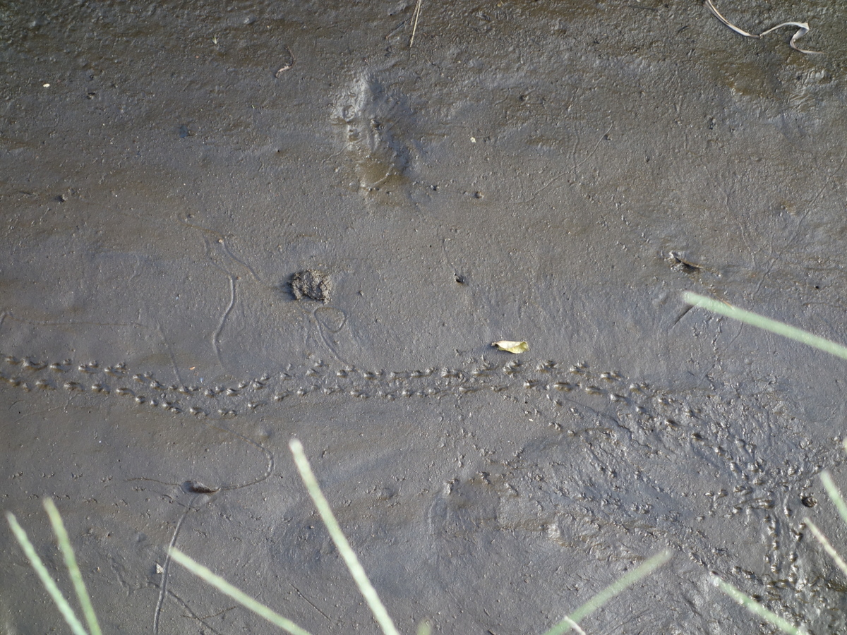 ↑アイキャッチ画像は水のなくなった用水路の泥の上についた赤ちゃんスッポンの歩いた跡。