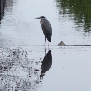 一旦帰宅して網を持ってきました。赤ちゃんスッポンは14分前の場所から下流側に1メートルほど斜めに(反対側の壁の方に)移動していました。(2018年9月28日16:28撮影)