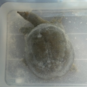 飼育1250日目の幼少時に背甲の後部を噛まれたスッポン