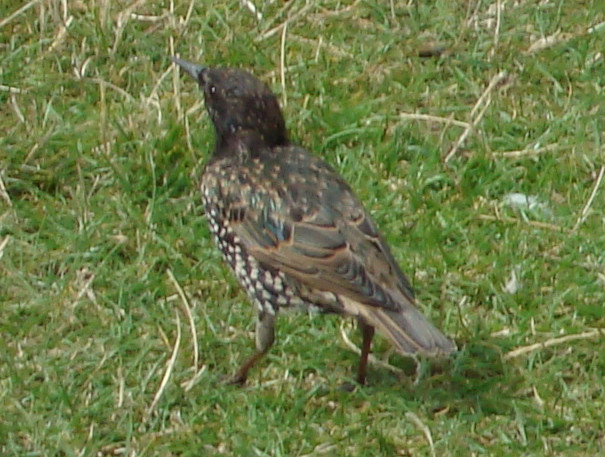 - 夕方に公園の芝生の上で2匹のミミズを食べたツグミ — Naumann’s thrush that has swallowed two earthworms on the grass in the park early in the evening(2020年1月25日16:55撮影)