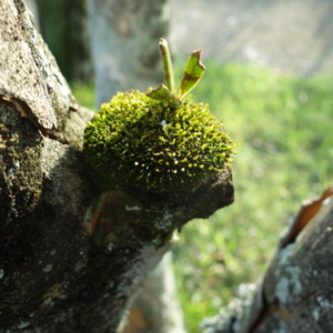 - ベランダのグァバの木に止まっているスズメの巣立ち雛 — A fledgling sparrow perching on guava tree of my veranda(2025年4月29日15:29撮影)