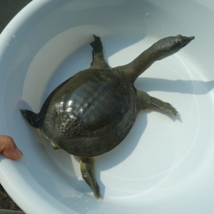 - 甲長26.5cmの日齢2161日のメスのスッポン — The 2161-days-old female soft-shelled turtle the carapace length of which is 26.5cm(2025年8月29日6:53撮影)