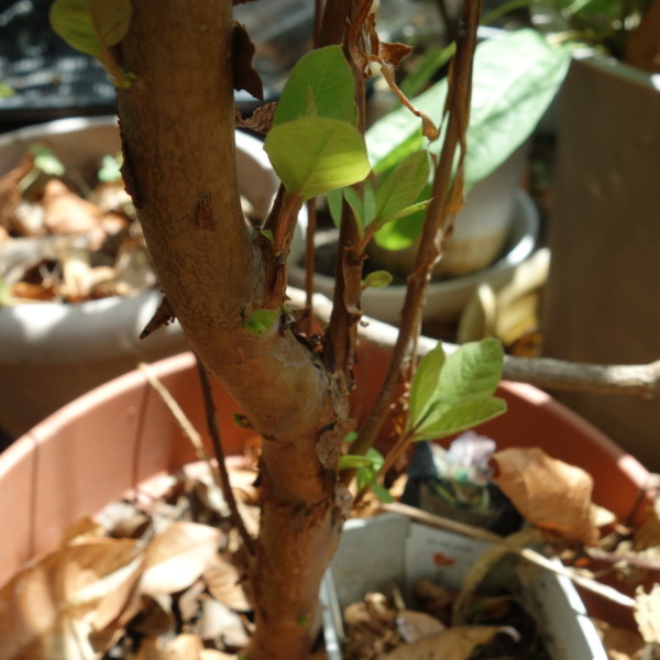 枯れたバンジロウの木の根元付近から発芽