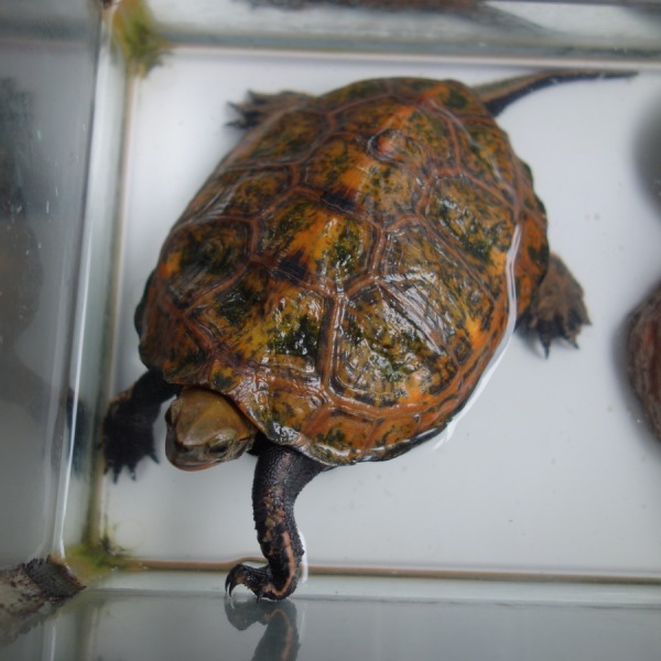 飼育418日目の赤ちゃんスッポン3匹の中でいちばん成長している1匹