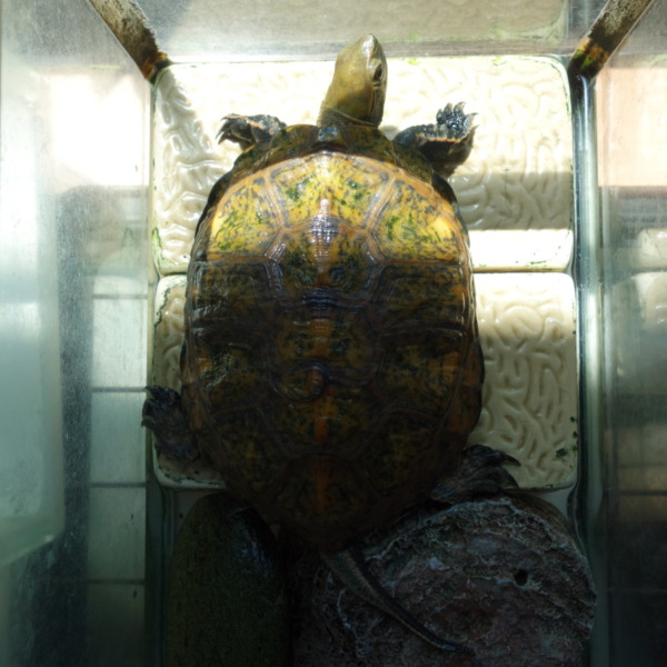 リラックスして甲羅干ししている飼育1144日目のニホンイシガメ