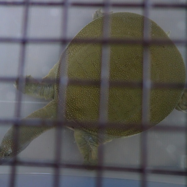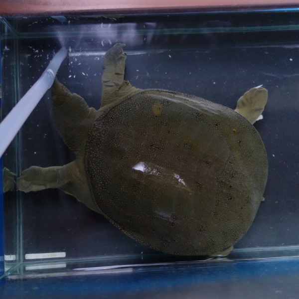 灯油ポンプの発する音に興味を示す日齢日齢1820日のスッポン♀