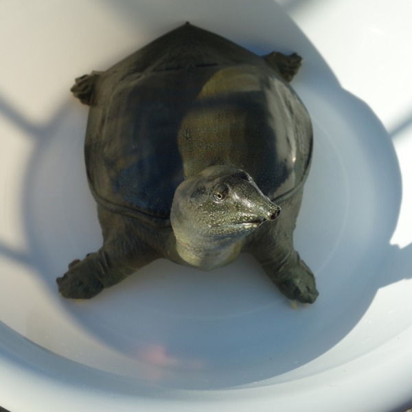 夕方の10分間の日光浴をする日齢1823日のスッポン♀