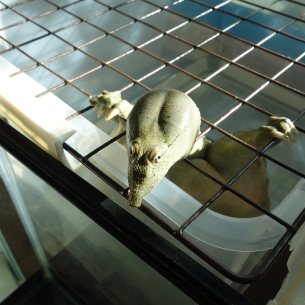 ワイヤーラティスから顔を出している日齢1540日のスッポン♂