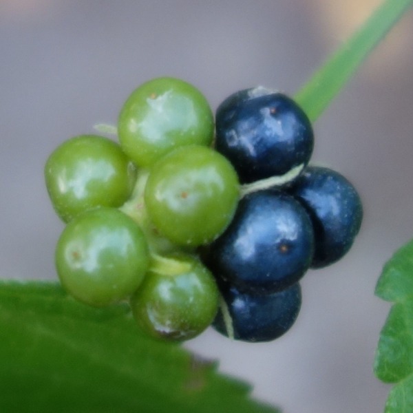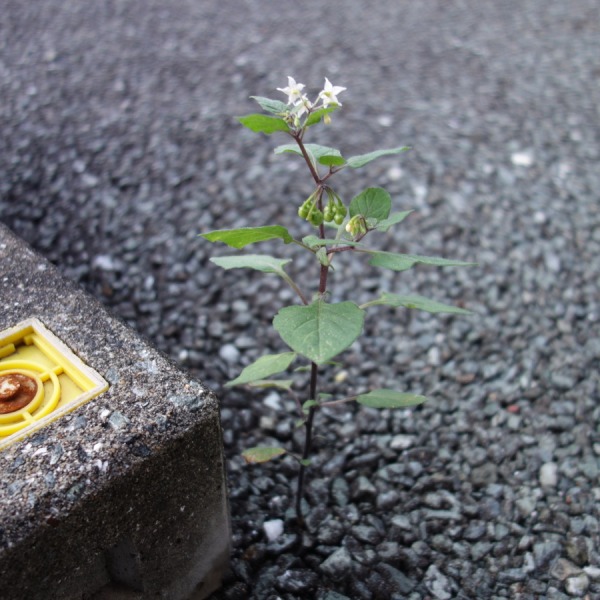 駐車場のアスファルト上に生えているイヌホオズキ(犬酸漿)
