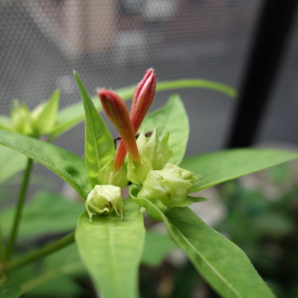 ベランダの柿の実生苗の紅葉した葉っぱ