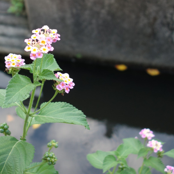 電柱の下に咲いたランタナの花