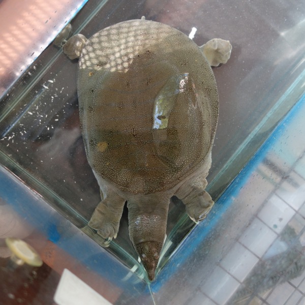日齢1925日の5匹のスッポンのうちいちばん小さいスッポンの首の掃除