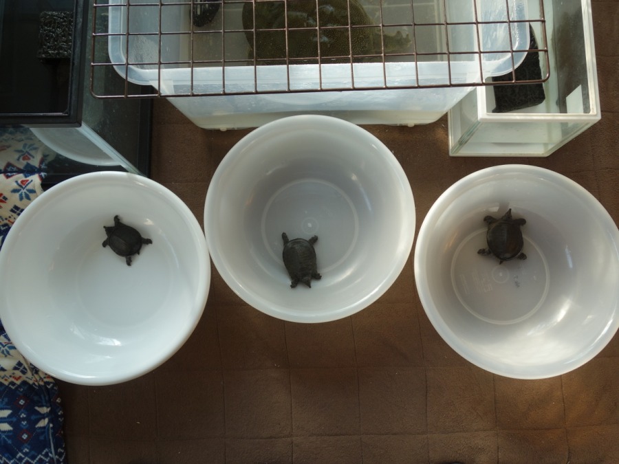 写真は洗面器に入れてホットカーペットの上で甲羅干し中のところを撮影したもの。
