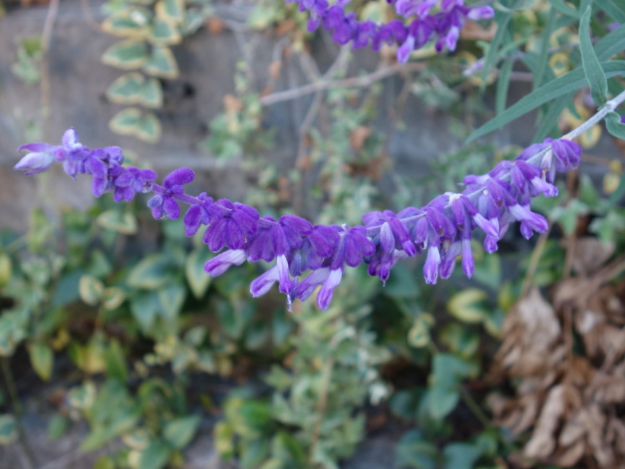 アメジストセージ(サルビア・レウカンサ)用水路の上に咲いています。