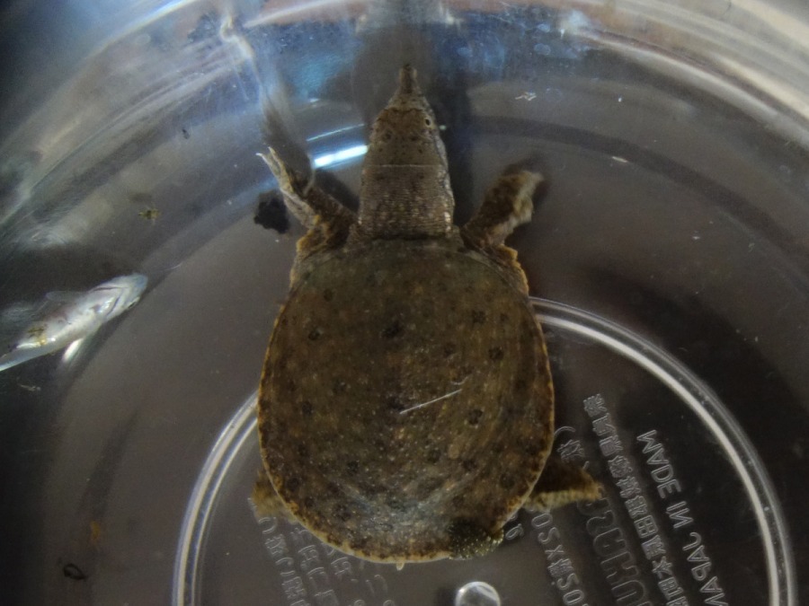 早朝の用水路で保護した歴代1匹目の赤ちゃんスッポンシゲオ。