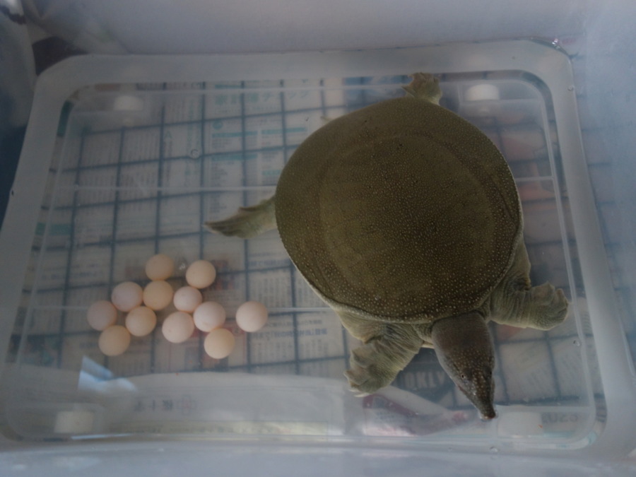 卵を12個産んでいた飼育1698日のスッポンのチビチビチビ♀