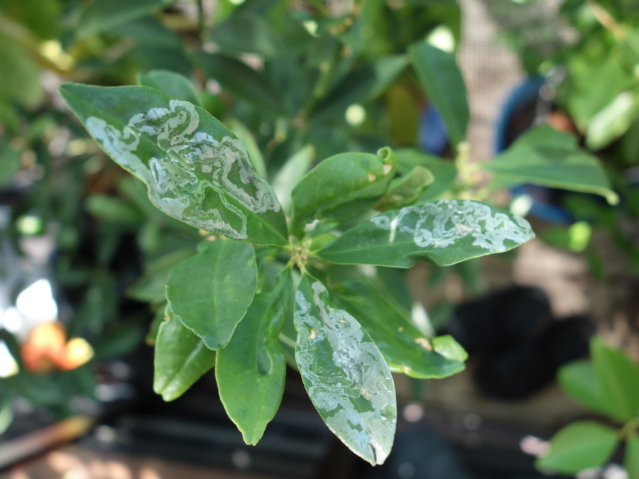 エカキムシにやられた金柑の葉っぱ
