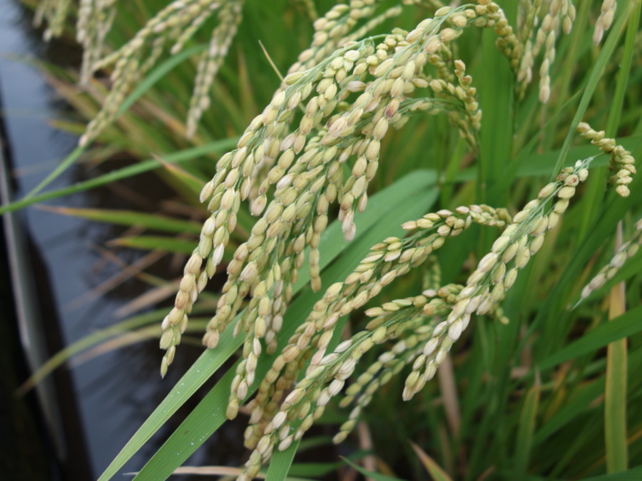 夕方のウォーキングのコースにある田んぼに稲穂が実っています。