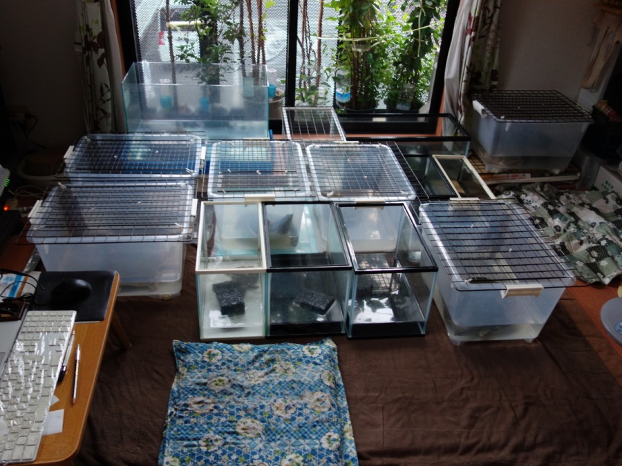 この写真には赤ちゃんスッポンのガラス水槽は写っていません(窓辺に置いていたため)。