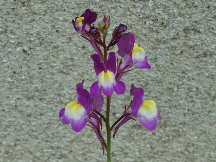 夕方のウォーキングの時に隣のアパートの壁の下に生えていたリナリア。