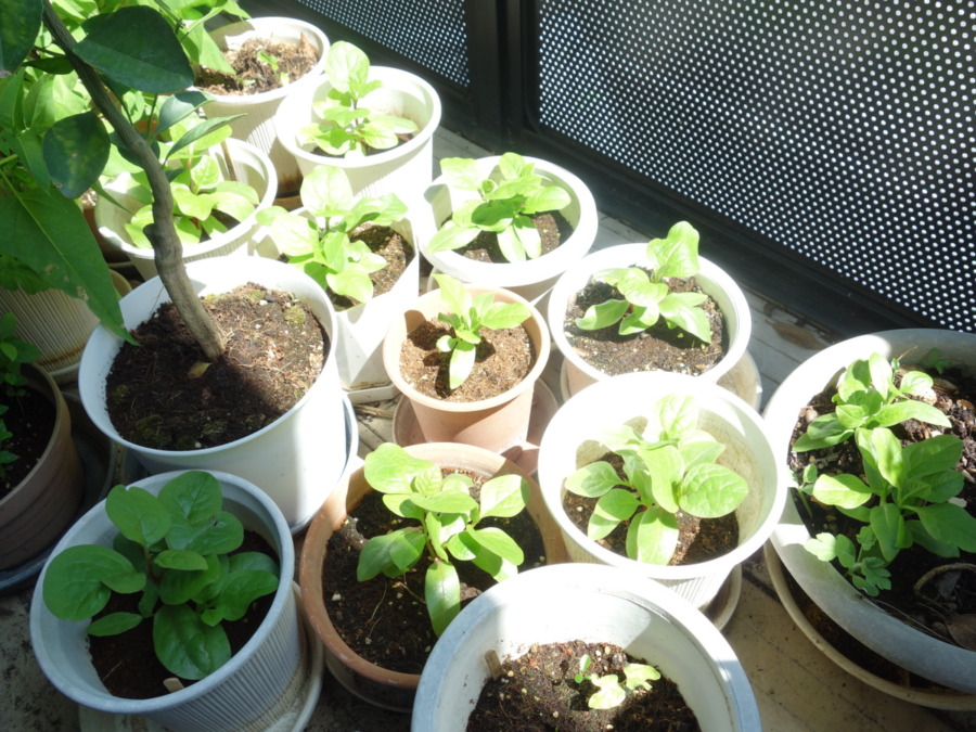種を蒔いてから40日目の5月20日現在、ベランダの鉢植えの苗はまあまあ順調に育っているといえると思います。