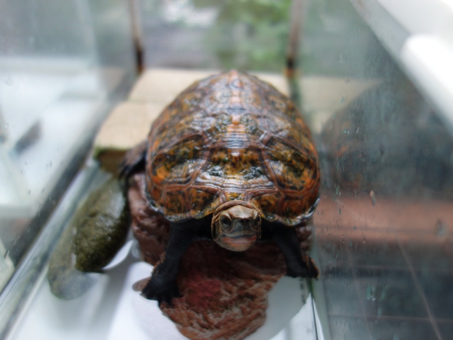 ニホンイシガメ上を見ているニホンイシガメ。