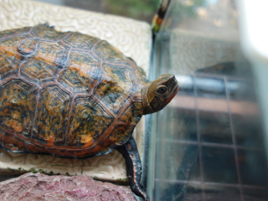 ブロックの上にいる飼育1159日目のニホンイシガメ。