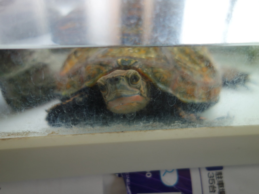 ニホンイシガメの部分を切り取って拡大しました。デジカメに向かって手を振ります。