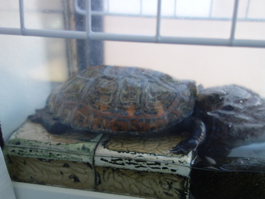 甲羅干しをしている飼育1829日のニホンイシガメ♂