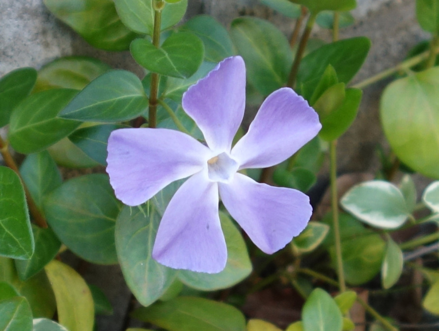 近所の民家の塀のところに咲いているツルニチニチソウ【蔓日日草, 蔓日々草】