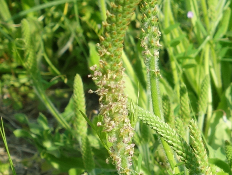 道端に生えているオオバコ(大葉子)に花が咲いていました。