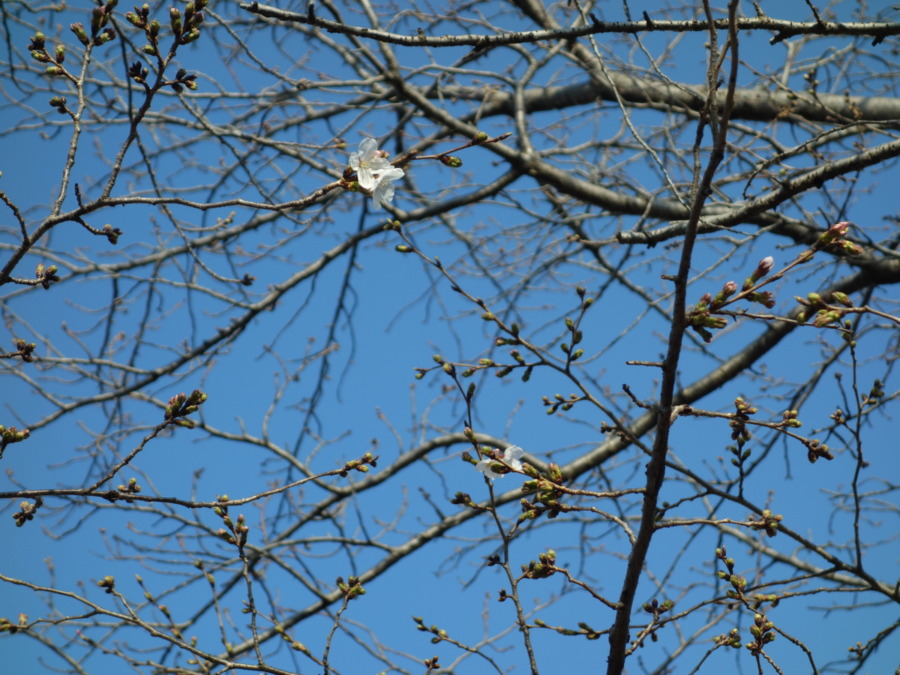 追記1:しかし、翌日の3月20日の夕方のローカルニュースでは標本木に1輪しか咲いてなくて開花発表にはなりませんでした(3月20日夕方現在)