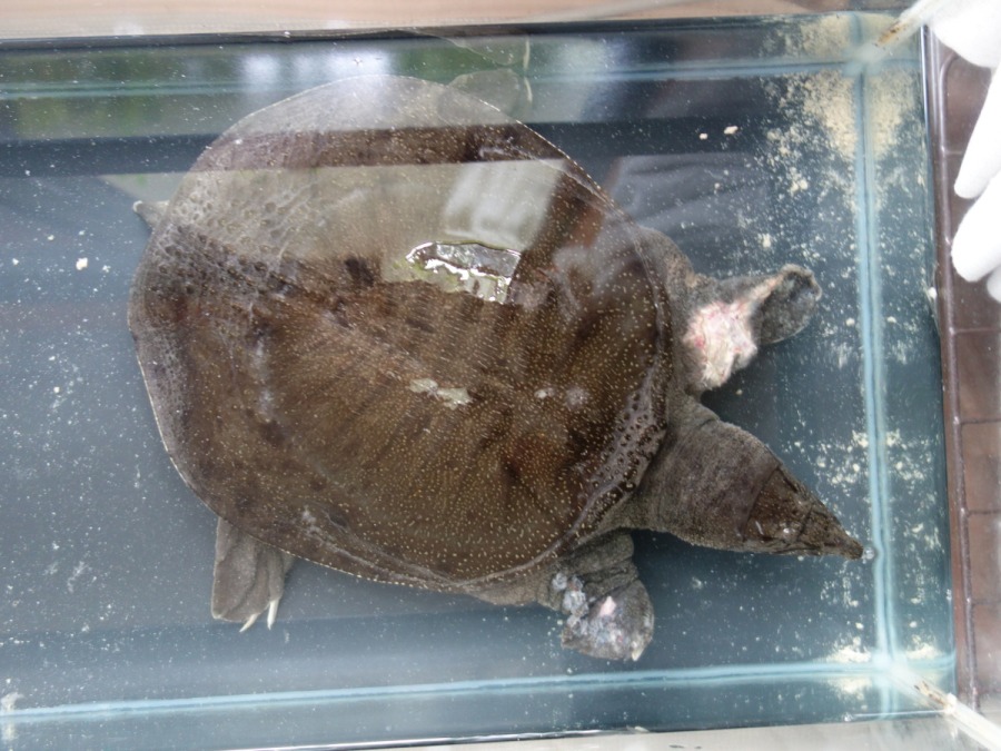スッポン左手の傷は昨日より少し良くなったかな。甲長25cmの高菜♂。