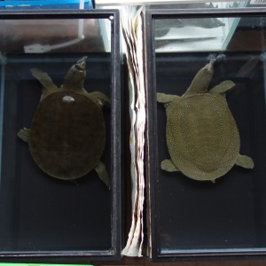 飼育1250日目の幼少時に背甲の後部を噛まれたスッポン