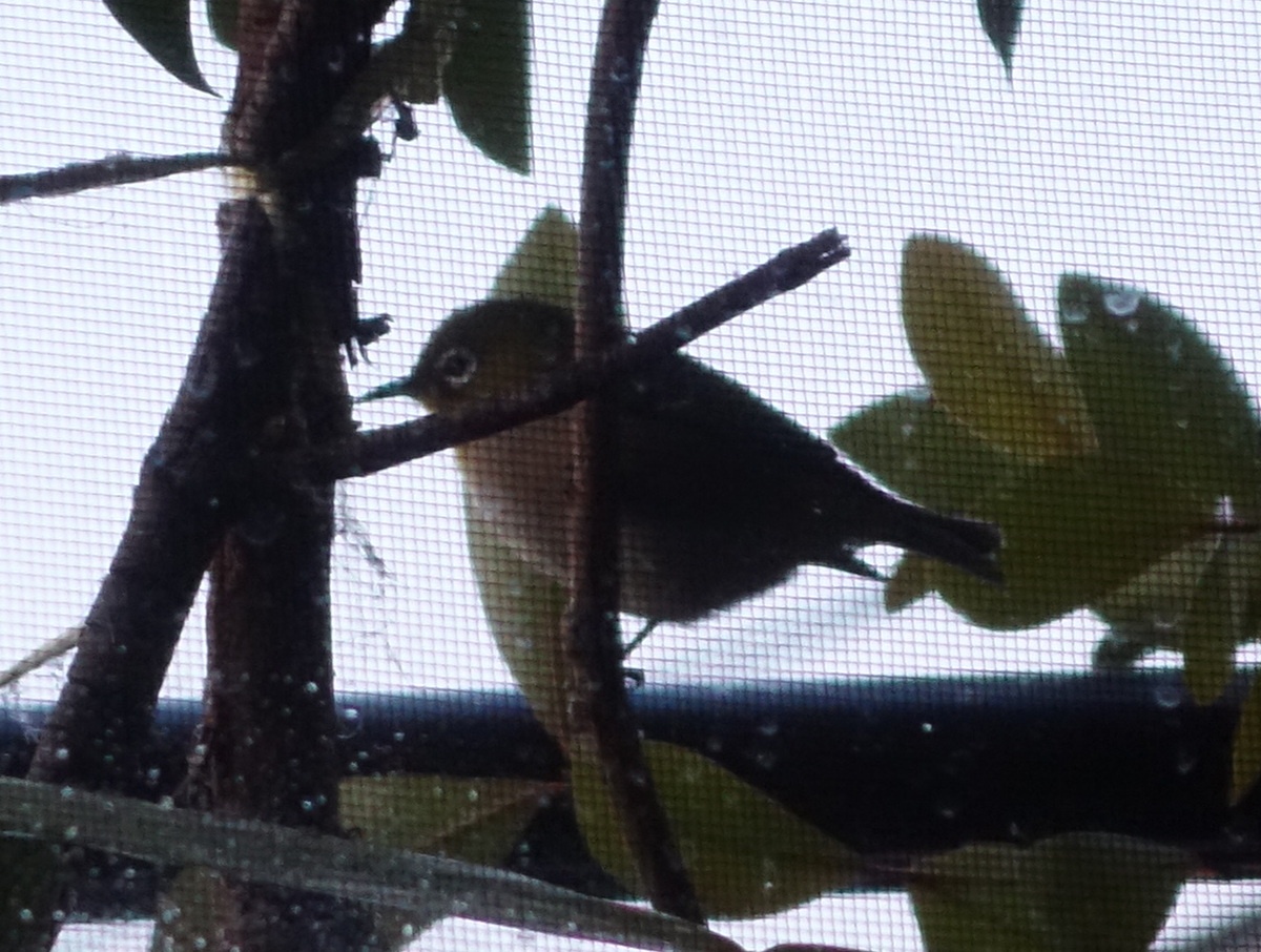 早朝にベランダにやってきた2羽のメジロのうちの1羽。(2025年1月25日7:00撮影)